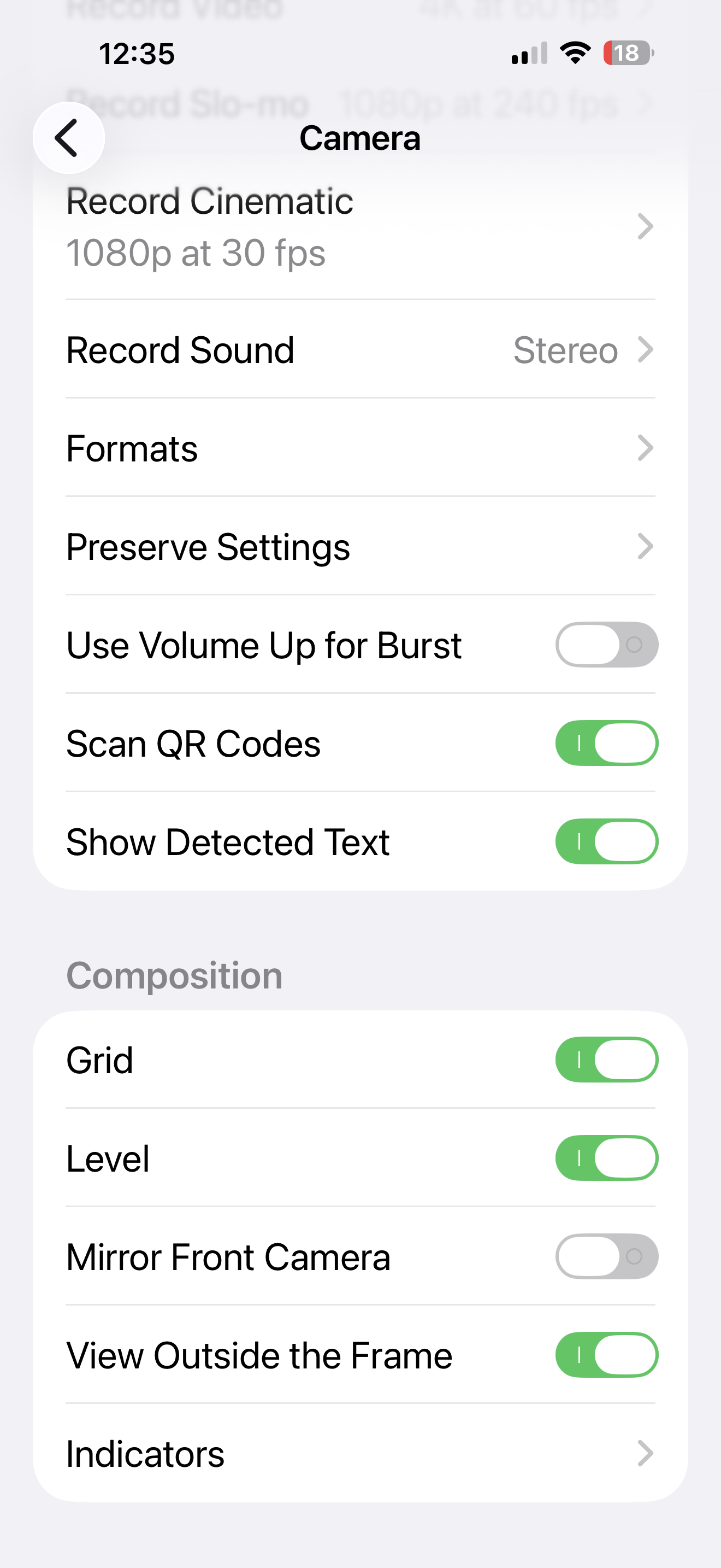 Go to Settings → Camera → Grid and turn it on. You'll see a tic-tac-toe grid overlay on your screen — that's the rule of thirds, and it's the foundation of good composition. The goal is to place your main subjects (doorways, windows, focal furniture) along those lines rather than dead-center. It sounds like a small thing, but it makes your photos feel intentional instead of accidental. 3. Turn on the level
